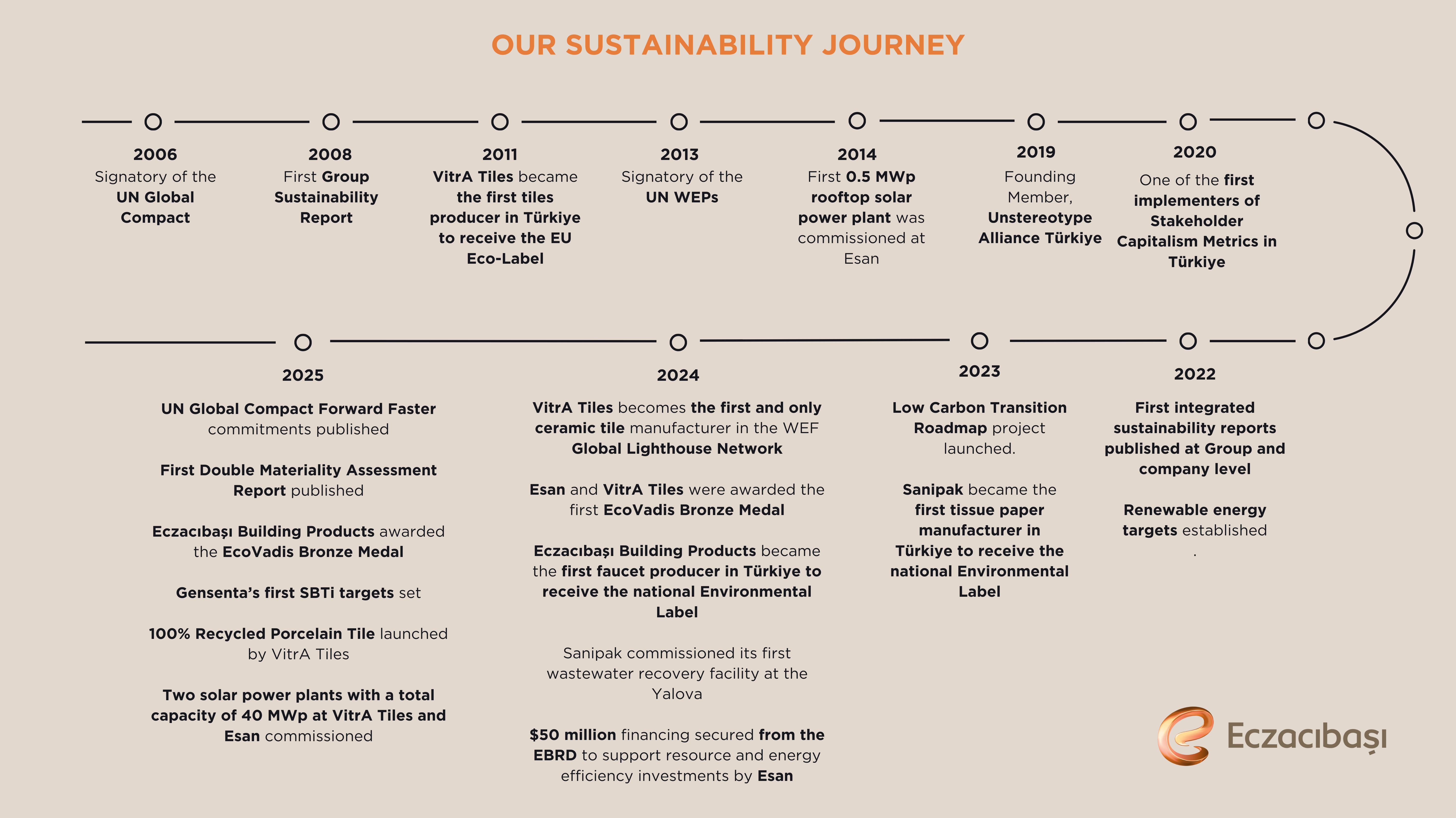 In 2013, the Eczacıbaşı Group officially committed itself to the United Nations’ “Women Empowerment Principles”. Developed by the United Nations Entity for Gender Equality and the Empowerment of Women (UN Women) and the United Nations Global Compact and launched on 8 March 2010, the Women's Empowerment Principles provide guidelines to businesses for reviewing and improving their human resources policies and practices to empower women in the workplace, marketplace and community.